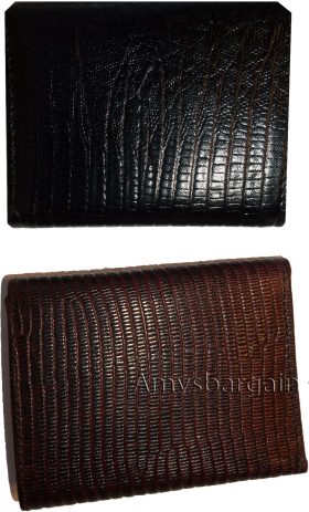 This is a very stylish Italian style lizard printed leather men's wallet with an easy-in-out ID case. It has 2 billfolds and 9 card slots. This wallet would make a great gift for that special someone that has it all, or treat your selves to its qualities.