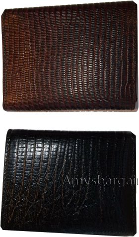 - Item: Man's trifold lizard printed leather wallet.