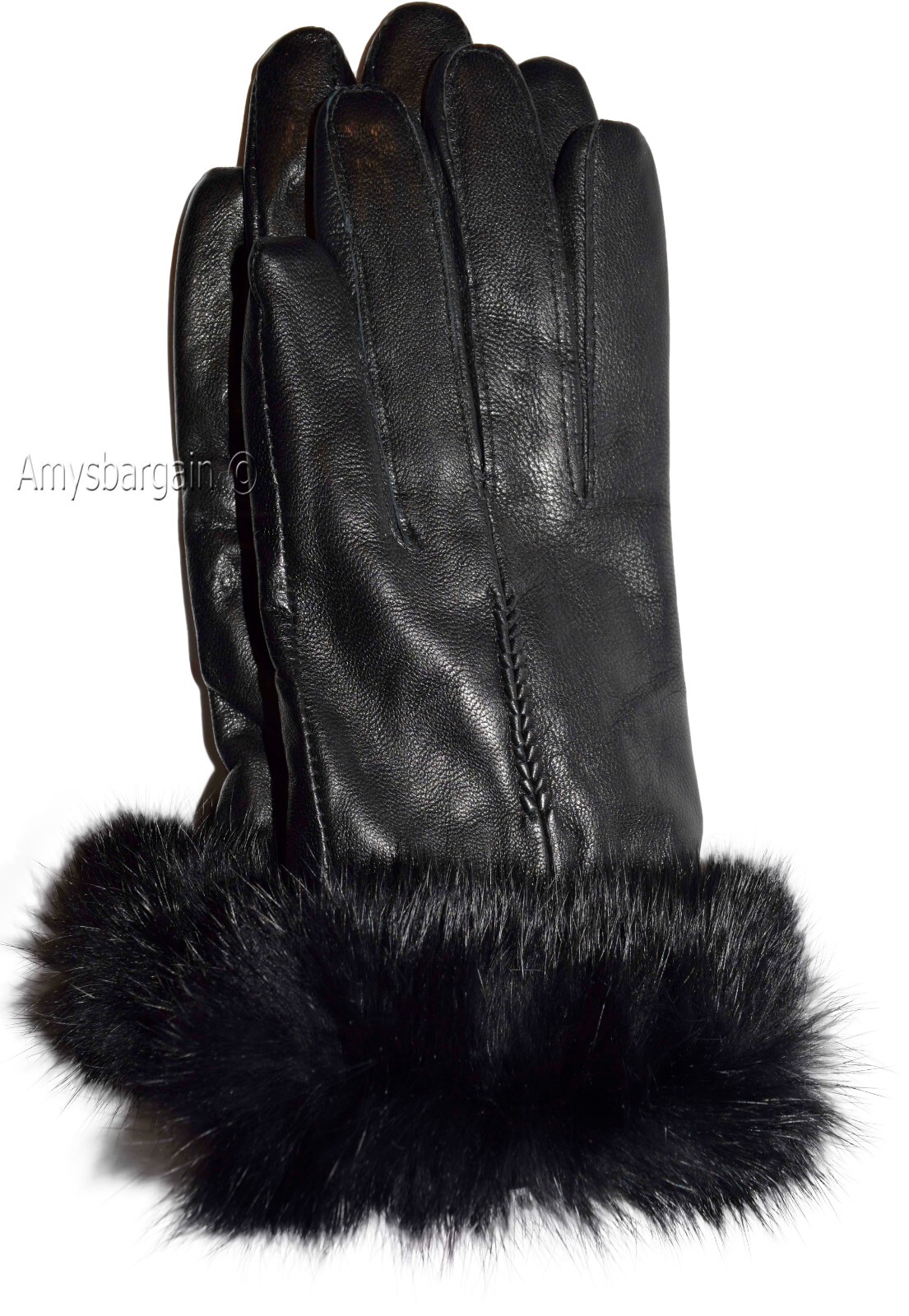 These are beautiful real rabbit soft fur trimmed leather women's warm winter gloves.
