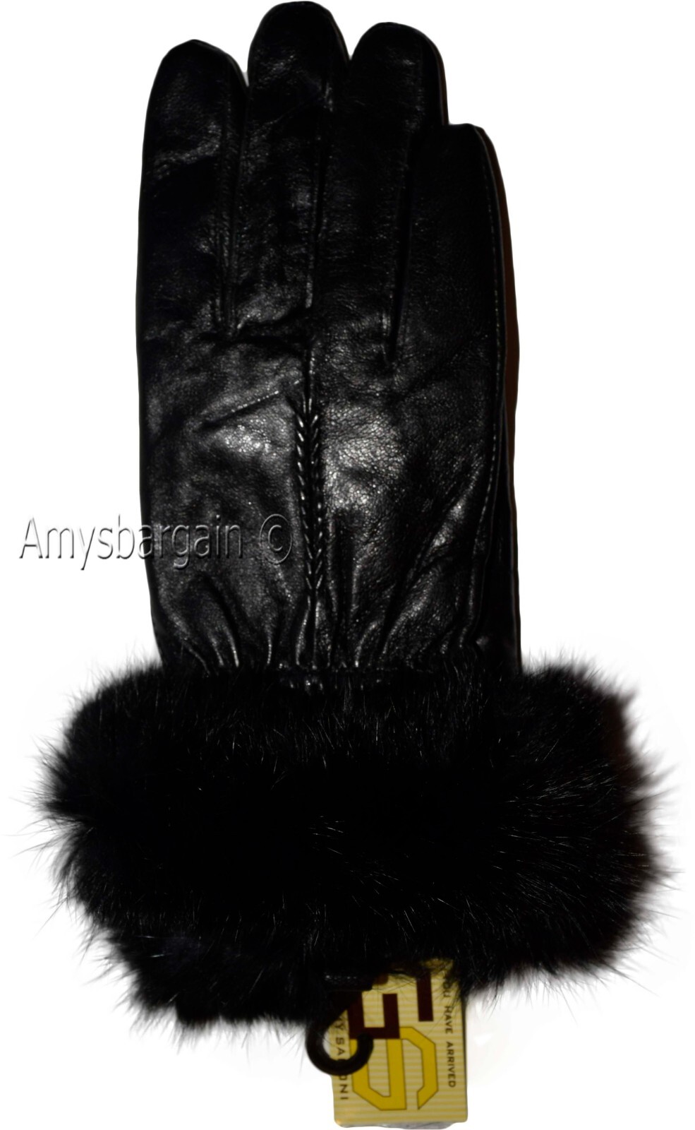 New Size (L) Women's Fur Trimmed leather gloves, Black Warm Winter Gloves BNWT.