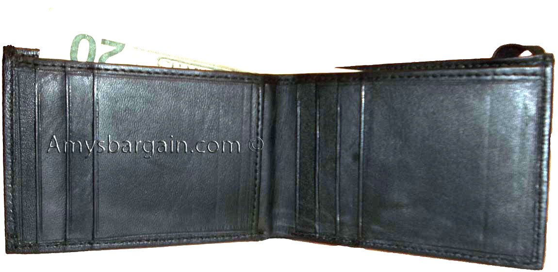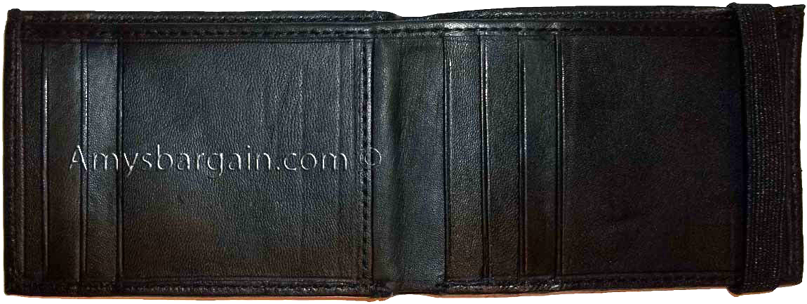 new style bifold leather man's wallet 8 credit card spaces id window bifold.Description:This newly designed wallet is fitted with an elastic closure for extra security, It is a top wallet; it is great for a gift for that special someone that has it all, or just treat yourselves to it.Buy it now! It will not last at this price!Item Details: