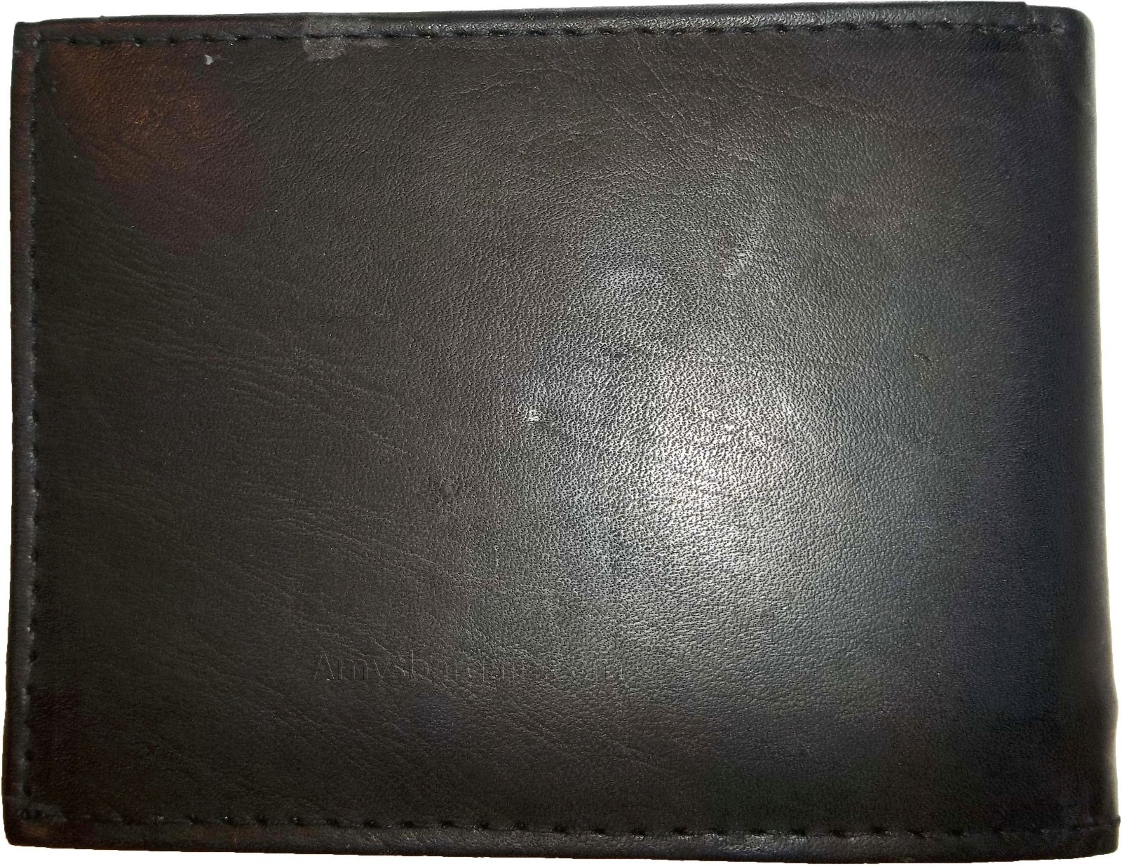 Description:Roman styled durable leather man's wallet with a hidden change purse/billfold pocket, 1 ID window and 2 suede lined bill fold compartments.Item Details: