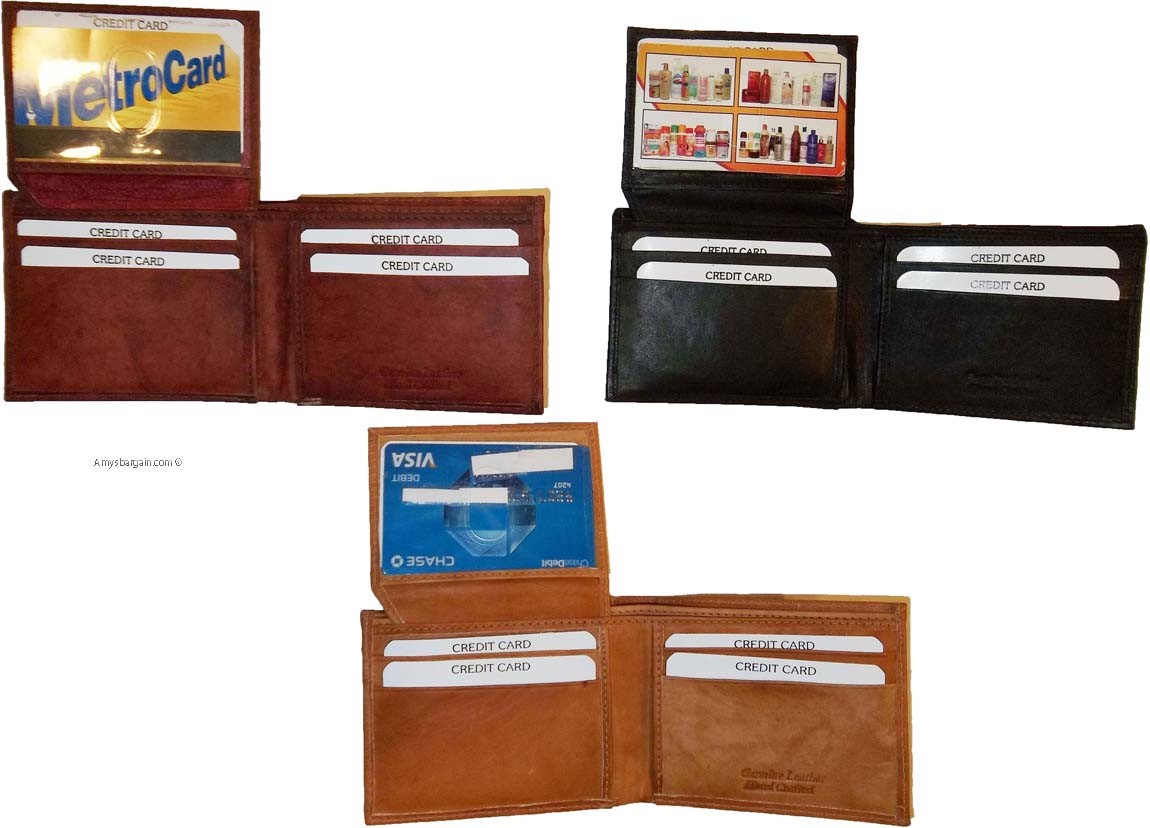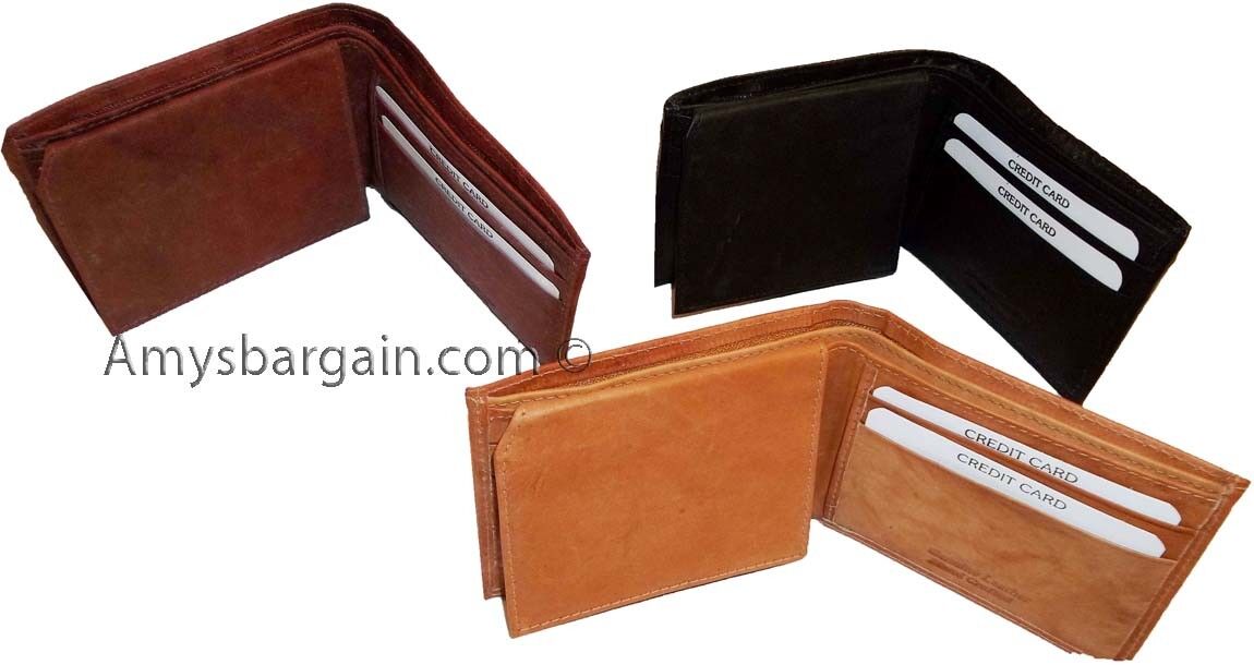New style leather man's wallets 2 suede lined billfolds Credit card ID holder.