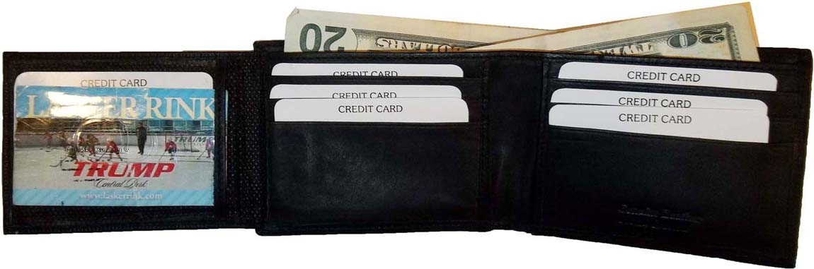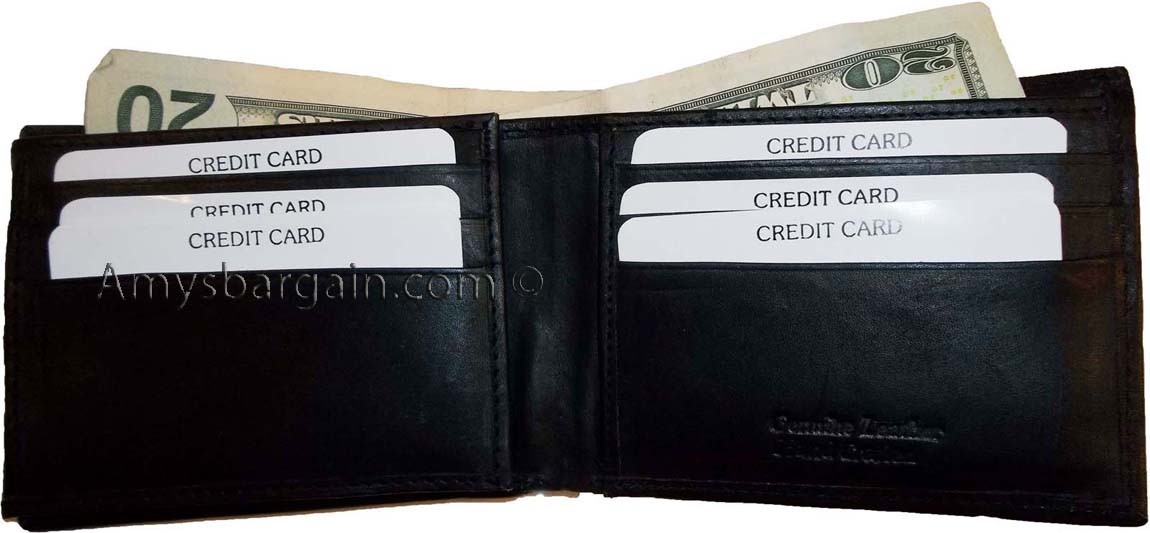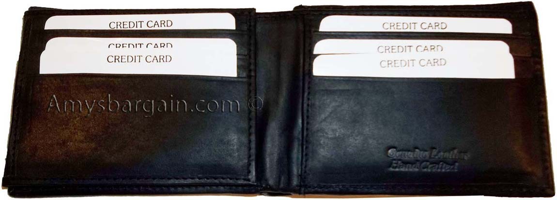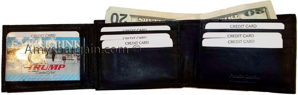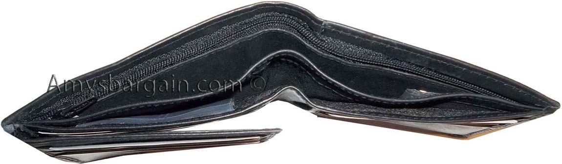 Description:Italian styled leather man's wallet with a hidden change purse/billfold pocket, 1 ID window and 2 suede lined bill fold compartments.Item Details: