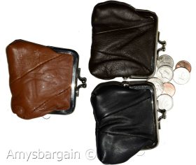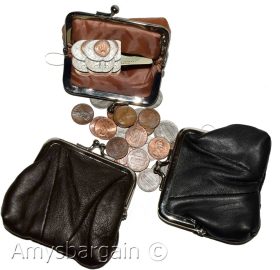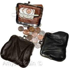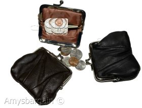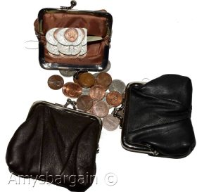 This easy to use metal framed women's leather coin purse is great for carrying lots of coins and some bills, it can fit other things as well, and it is easy to carry around in the palm of your hand, pocket, handbag, or briefcase.