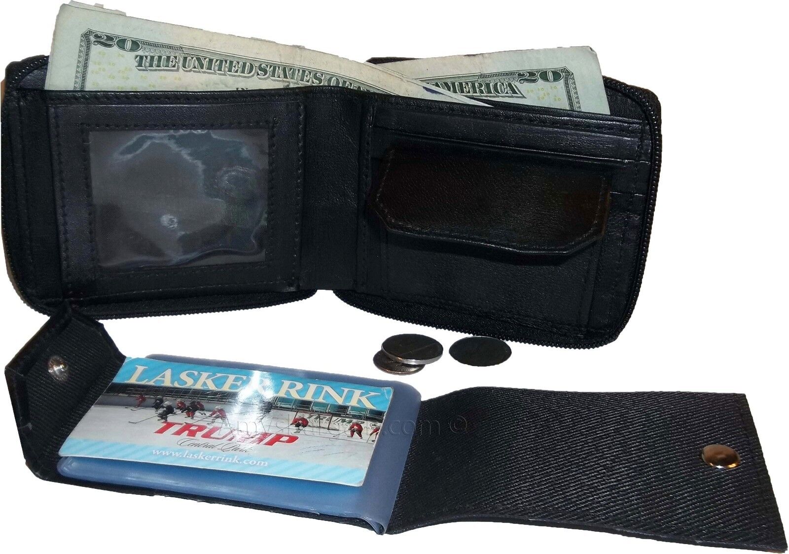 New Zip around man's Leather wallet change purse mini photo holder ID window bn.Description:This fine quality man's zip around wallet has a detachable 6 card transparent card case and a built-in change purse.This item would make a nice gift for that special someone, or treat yourself to it.Item Details: