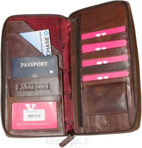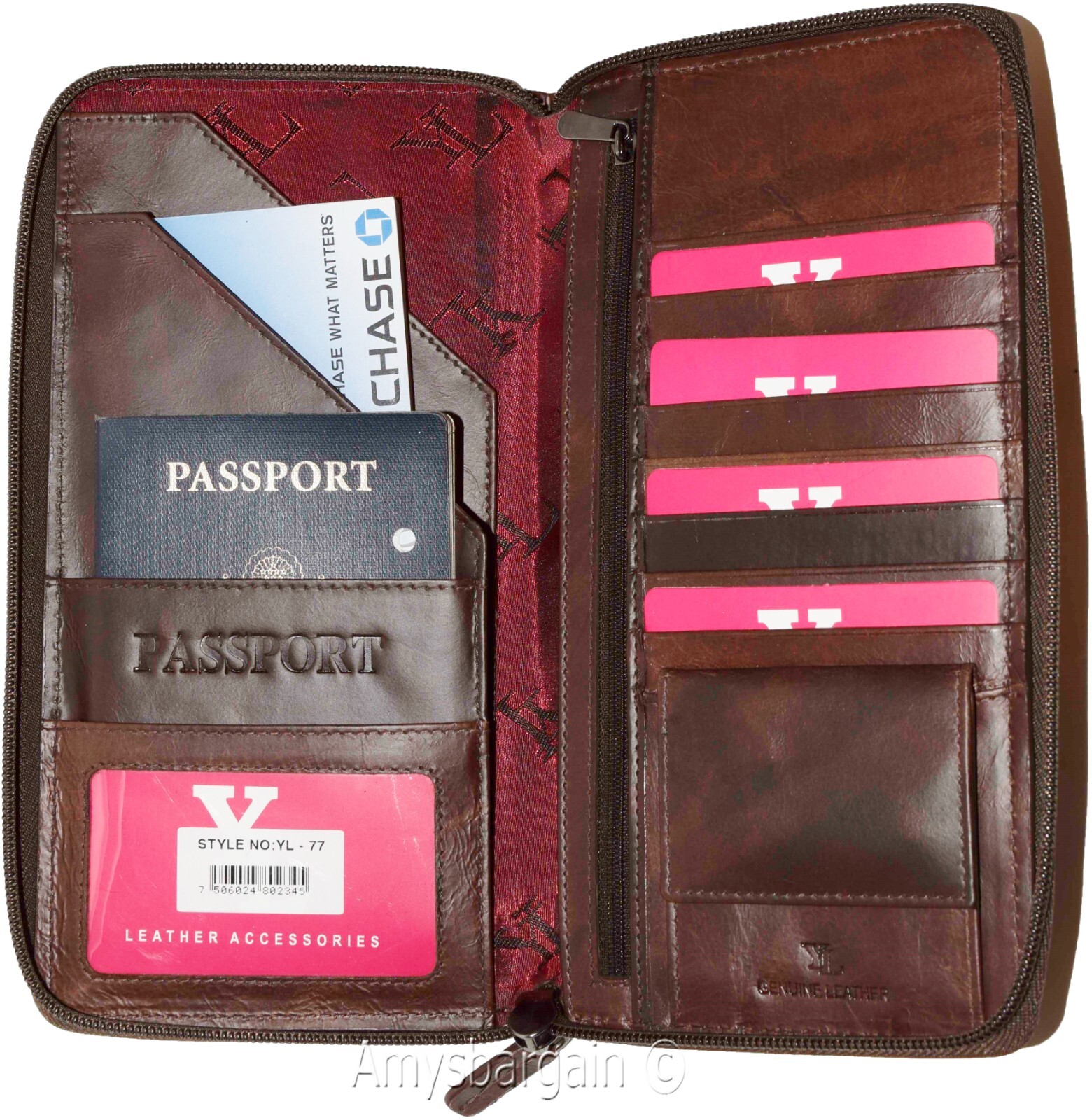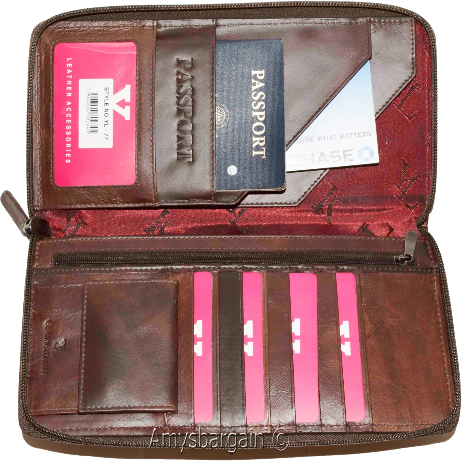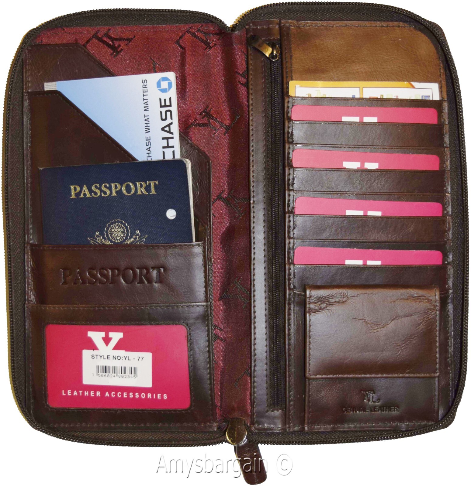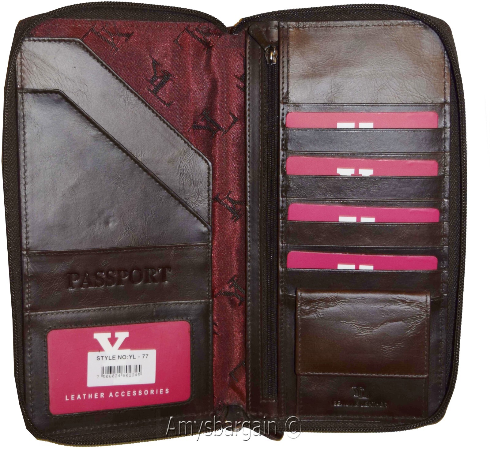 Organizer Leather document case passport ID airline ticket Credit card more BN