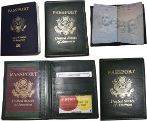 case black genuine leather passport cover lot of 6 travel accessories.Description:Buy the lot and save a lot!This one is a favorite among tourists and non-tourists alike. It is a USA leather passport case with built in bank card space and an ID window.This wonderful passport case is an exceptional value at this price!It will not last.Item Details: