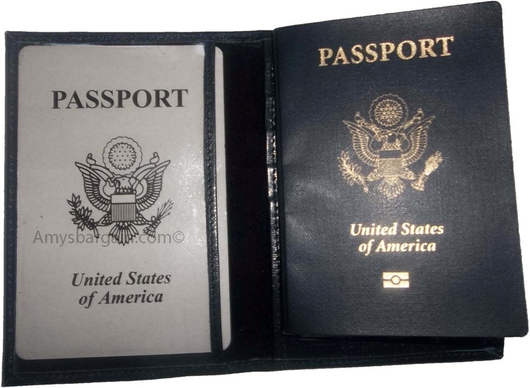 case black genuine leather passport cover lot of 6 travel accessories.Description:Buy the lot and save a lot!This one is a favorite among tourists and non-tourists alike. It is a USA leather passport case with built in bank card space and an ID window.This wonderful passport case is an exceptional value at this price!It will not last.Item Details: