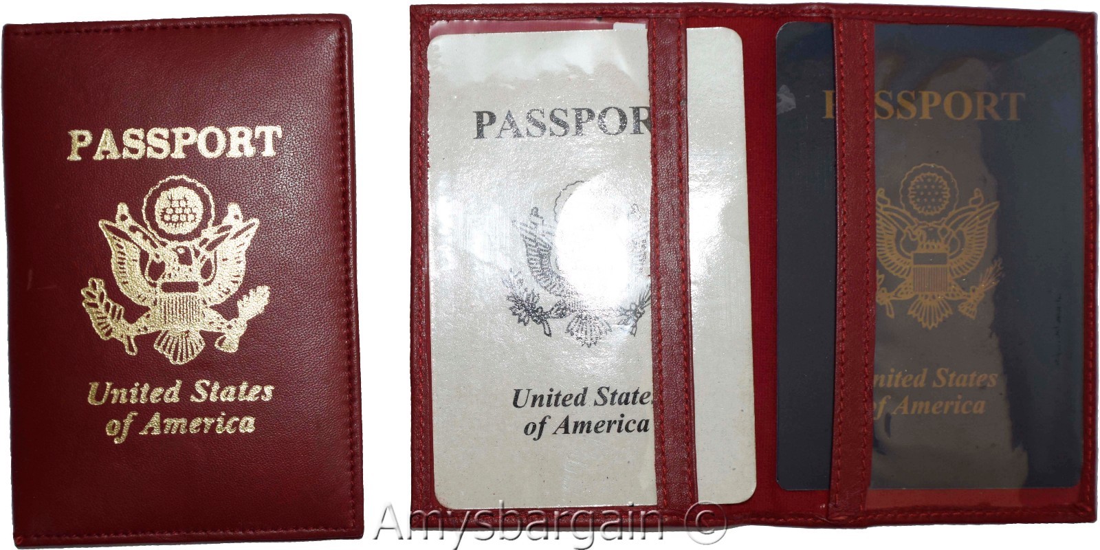 cover red wallet credit card case id holder.Description:This one is a favorite among tourists and non-tourists alike. It is a USA leather passport case with built in bank card space, this wonderful passport case is an exceptional value at this price.Act now. It will not last!Item Details: