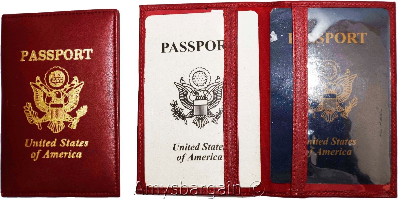 cover red wallet credit card case id holder.Description:This one is a favorite among tourists and non-tourists alike. It is a USA leather passport case with built in bank card space, this wonderful passport case is an exceptional value at this price.Act now. It will not last!Item Details: