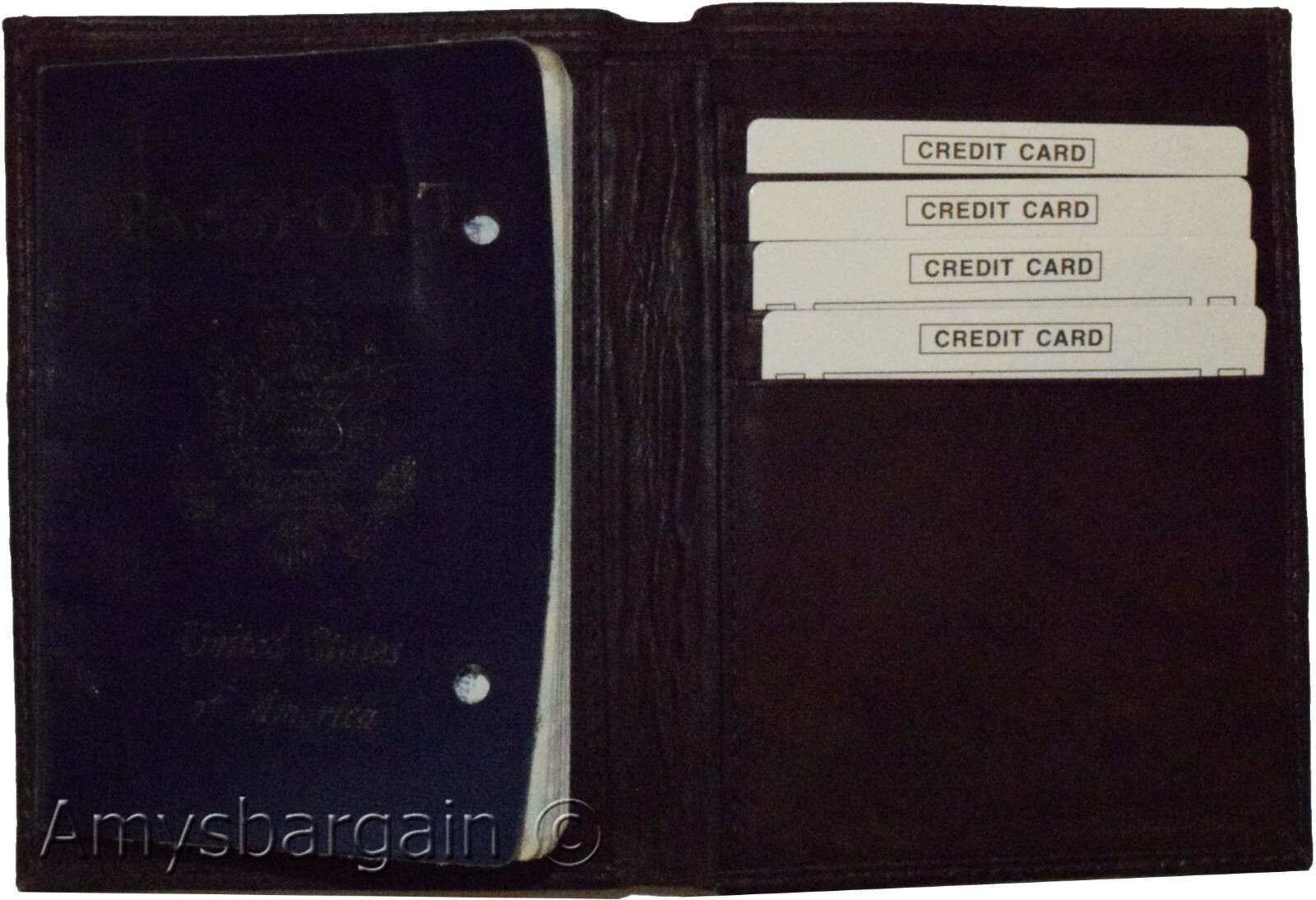 It has built-in bank card spaces. This wonderful passport case is an exceptional value at this price.
