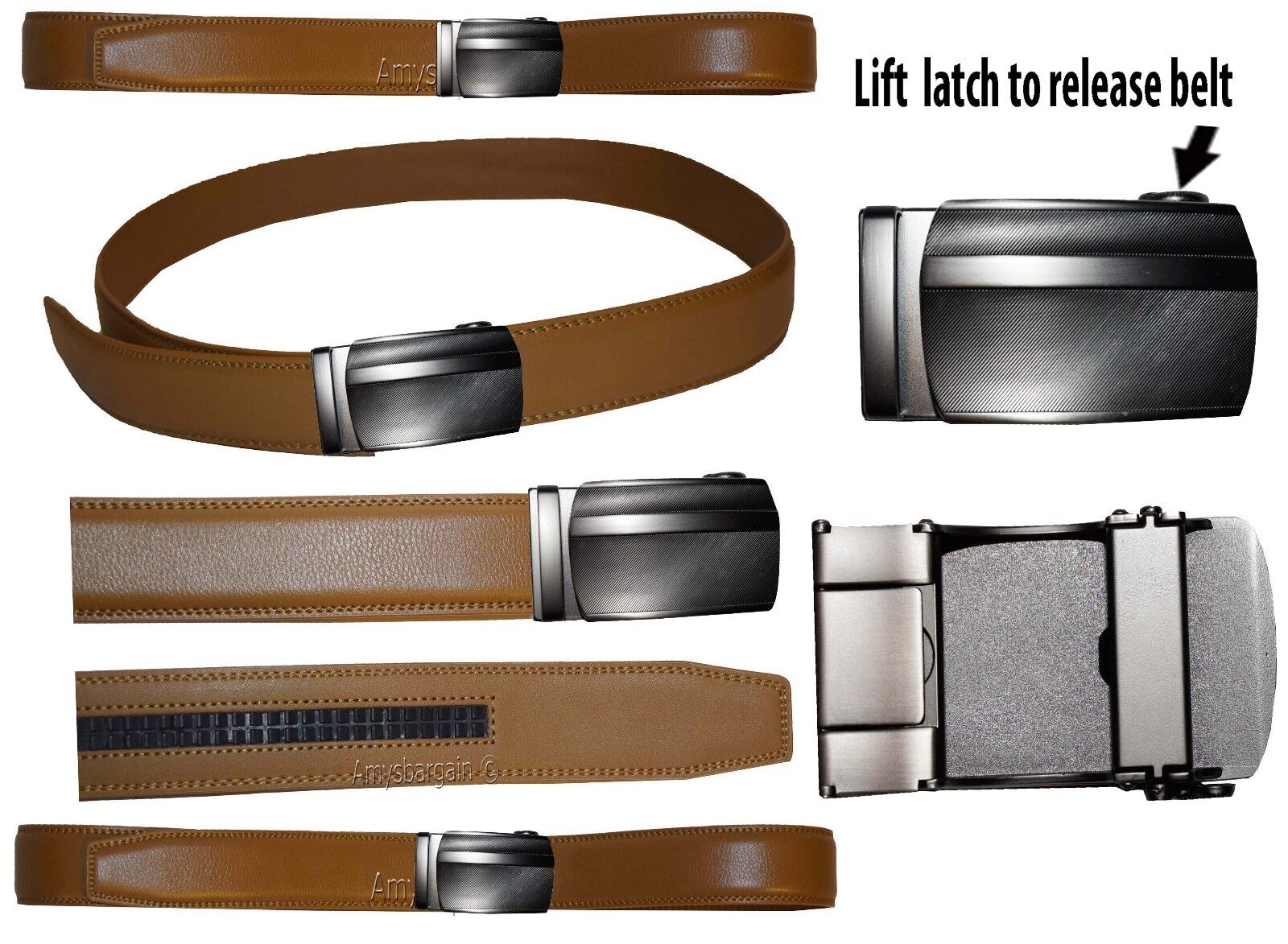 This is a new "Quick-Lock" all-in-one dress and casual belt. It is a and very fashionable men's leather belt. It is cut-able and adjustable. It has an easy on off auto-lock detachable metallic clip on buckle.