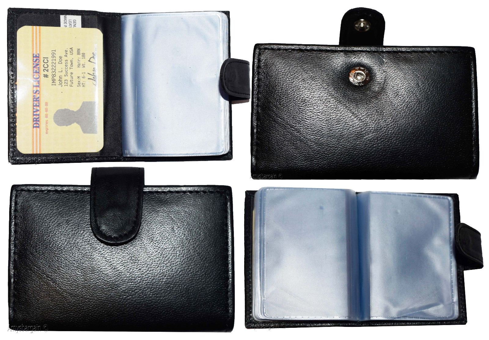RFID leather business card id credit card picture case 24 transparent card slots.
