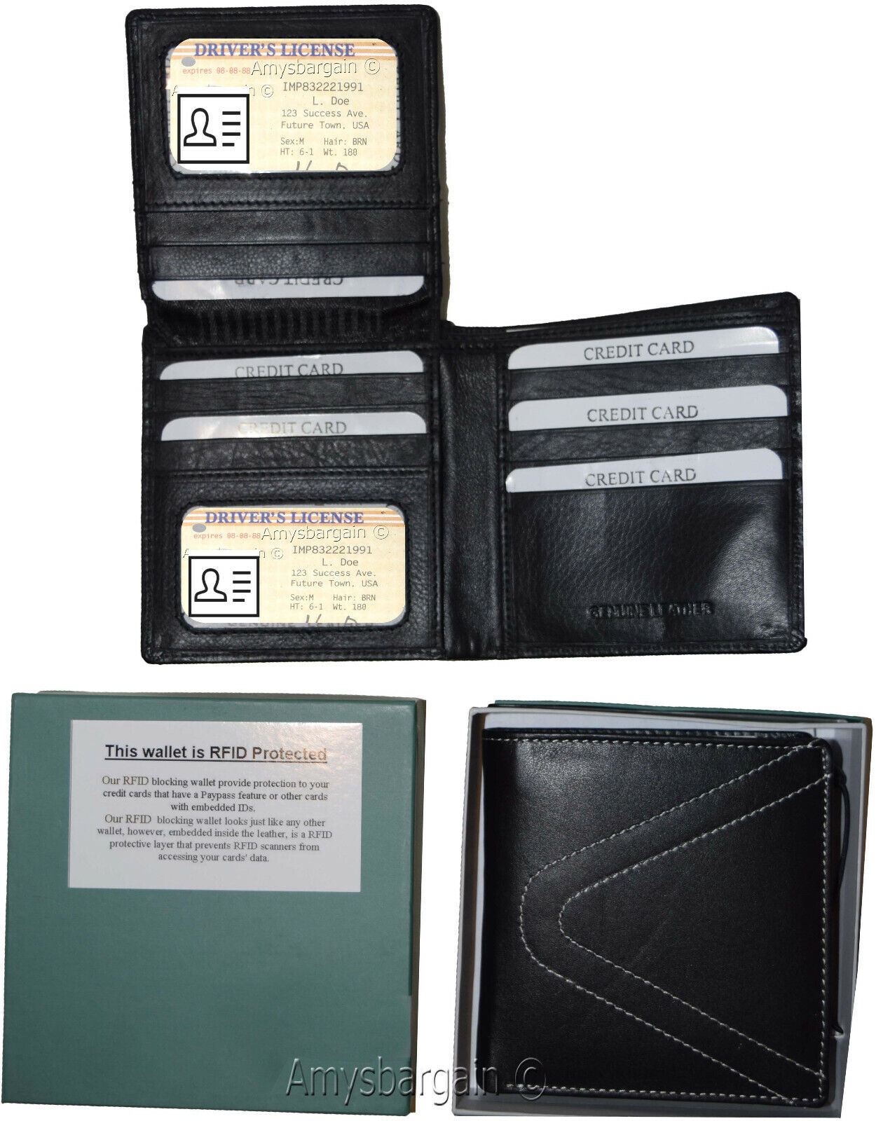 RFID men's hipster wallet genuine leather bifold 15 card 2 IDs new wallet in box.