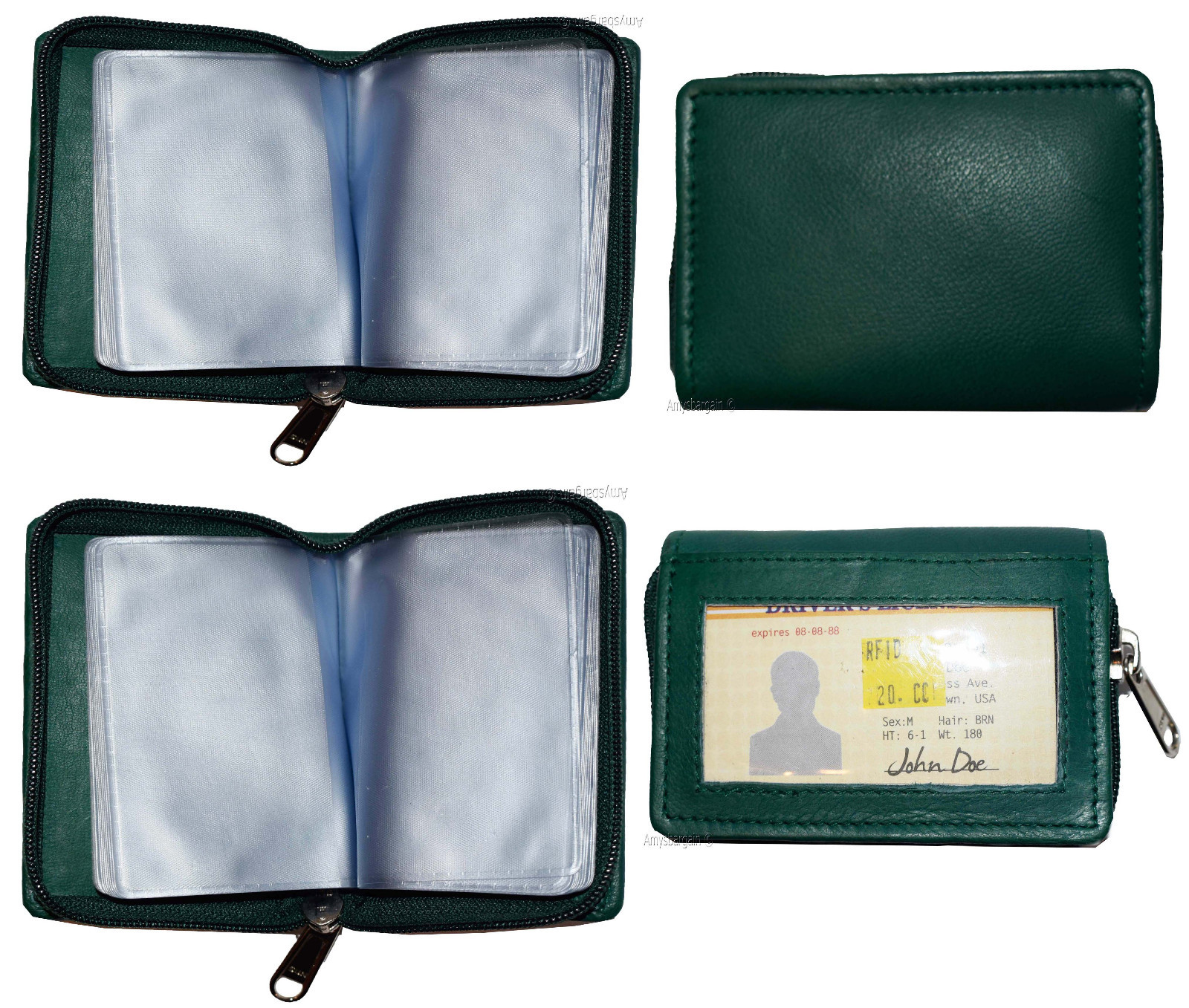 RFID zip around leather business card id credit card picture case 30 card slots..