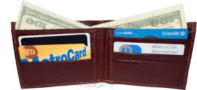thin men's leather wallet 8 card slots 2 bill spaces thin bifold men's wallet.Description:This slim man's wallet would make a great gift item, or treat yourself to it. This man's wallet has 8 card spaces and 2 bill fold pockets.Act now! It won't last.Item Details: