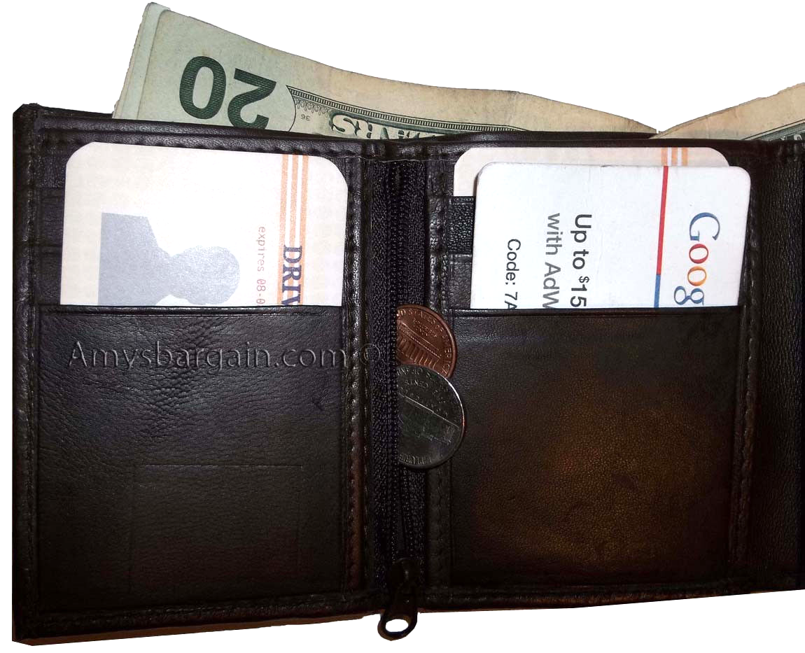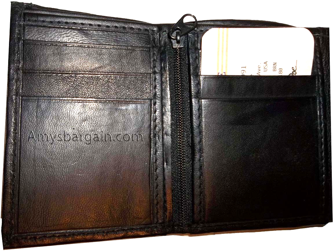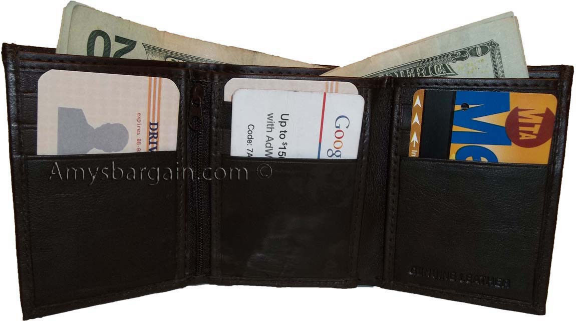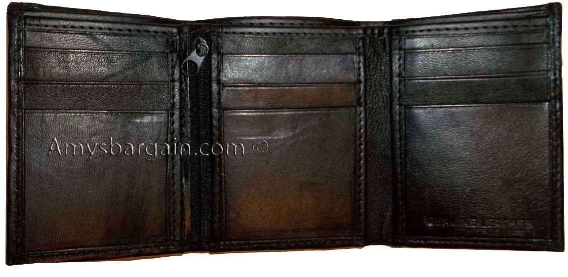 Trifold Leather Man's wallet 9 card 2 bill slots roomy zip change purse new 1.