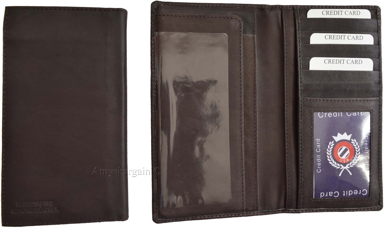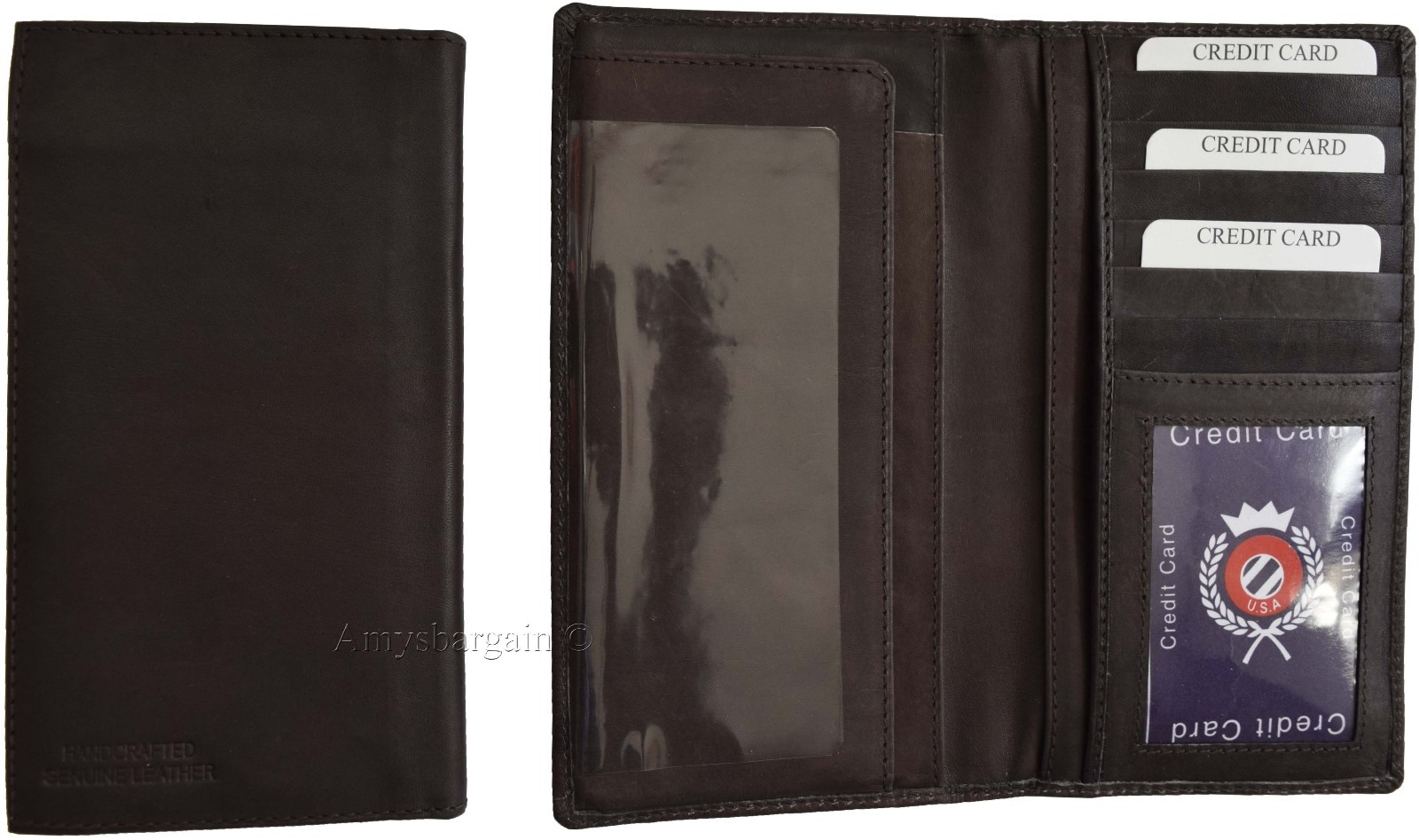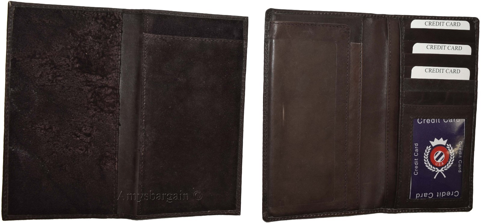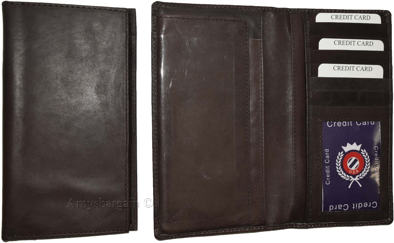 Women/Man's Leather Checkbook Wallet, Unbranded Brown checkbook cover new.Description:This item is a suede lined, purely beautiful leather checkbook wallet with 5 bill spaces. It can be utilized by either women or man. This checkbook wallet is super slim, yet roomy. It is plain and has a simple design. It has a carbon copy separator and a built-in ID case.The top grain calfskin leather provides for great feel and exceptional durability.Item Details:
