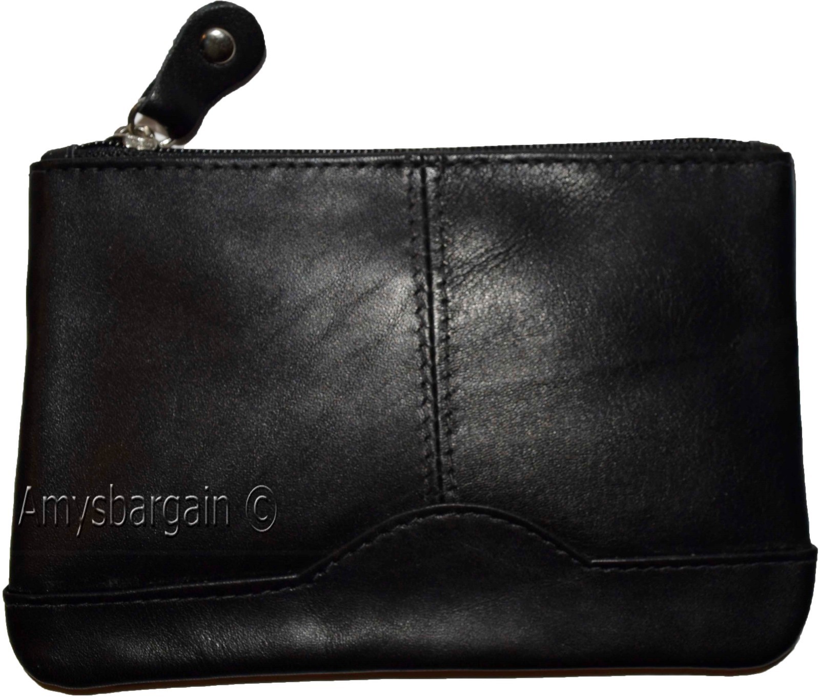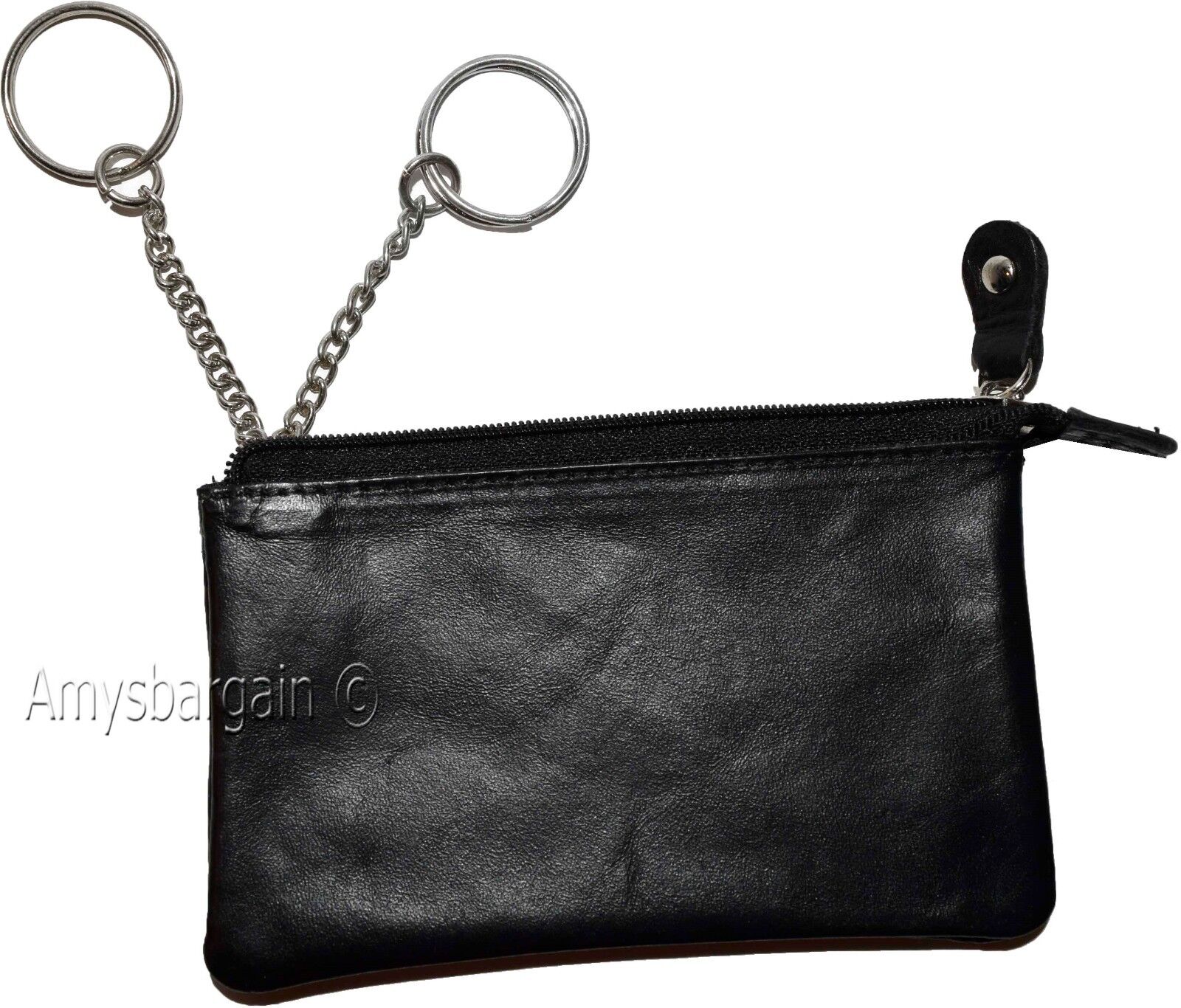 Women's black leather change purse ID window key ring wrist-let new coin case
