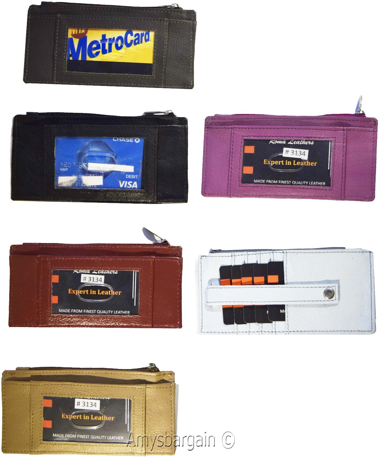 Women's Genuine Leather ID Credit Card Holder Wallet Slim Purse Colors Zip case.