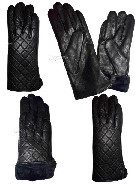 women's gloves size s quilted black leather dress gloves winter gloves new.