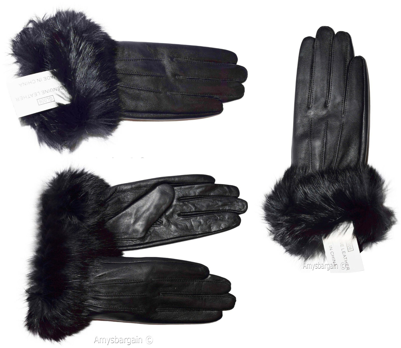 These are beautiful real fur trimmed leather women's warm winter gloves.