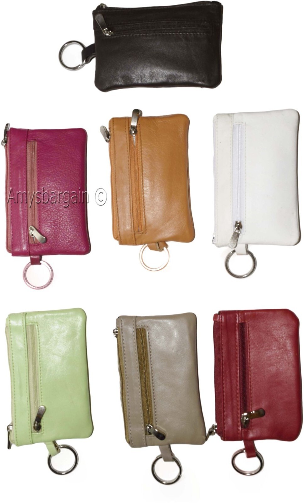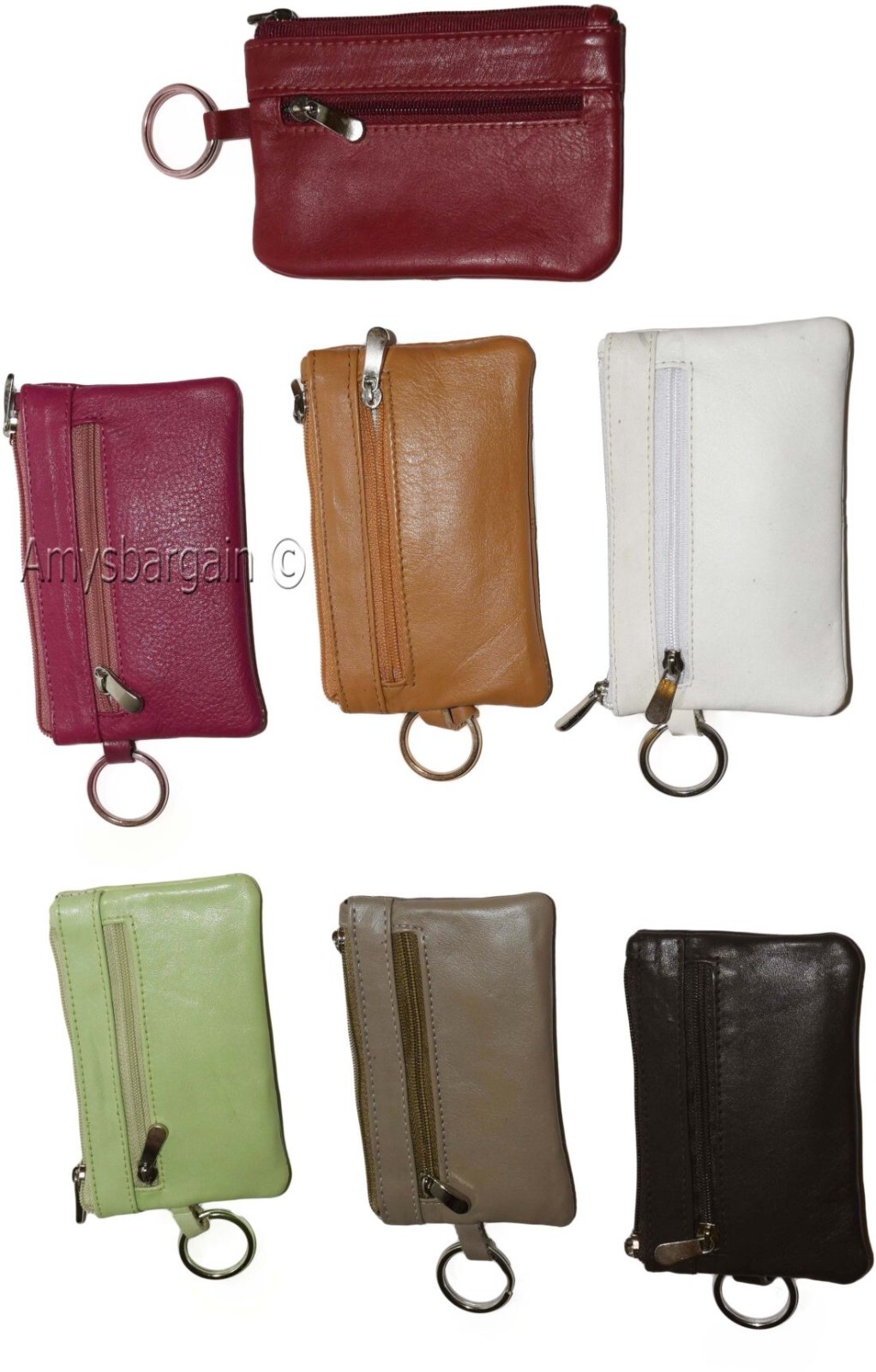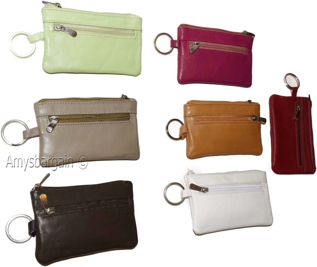 Women's Leather change purse Zip coin wallet Coin purse 2 pockets purse key ring.