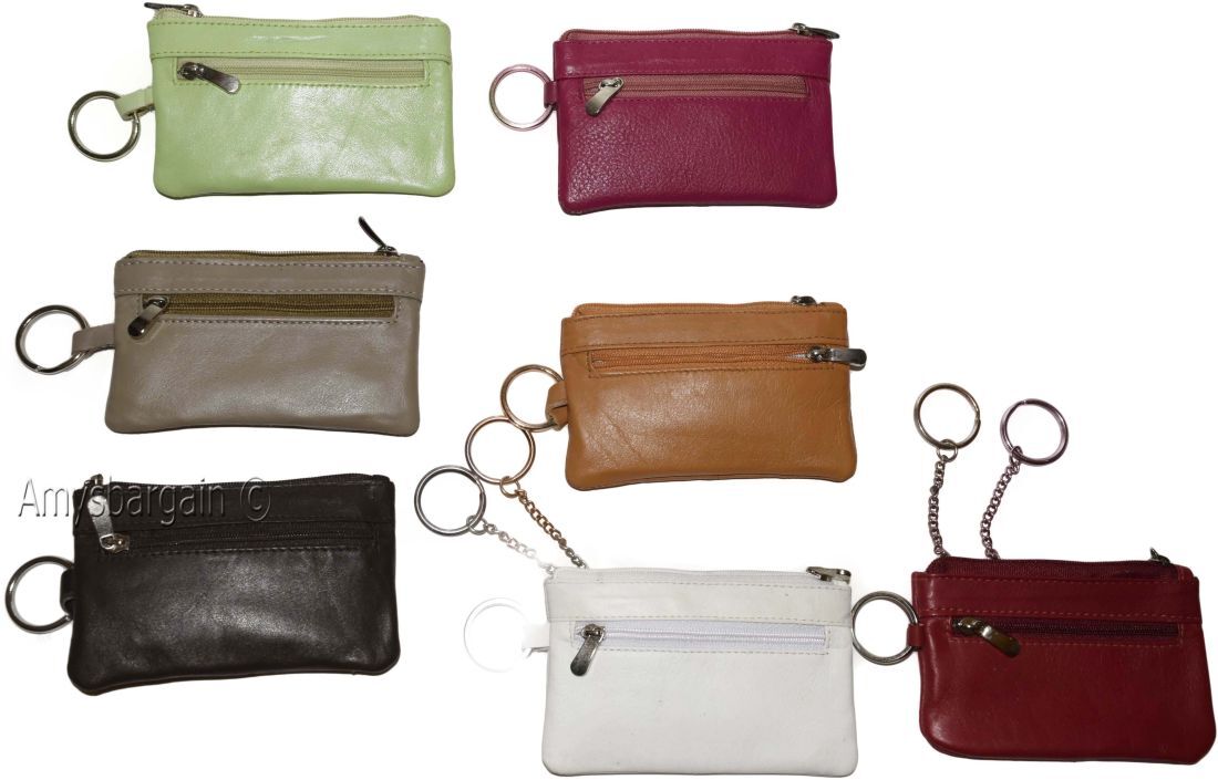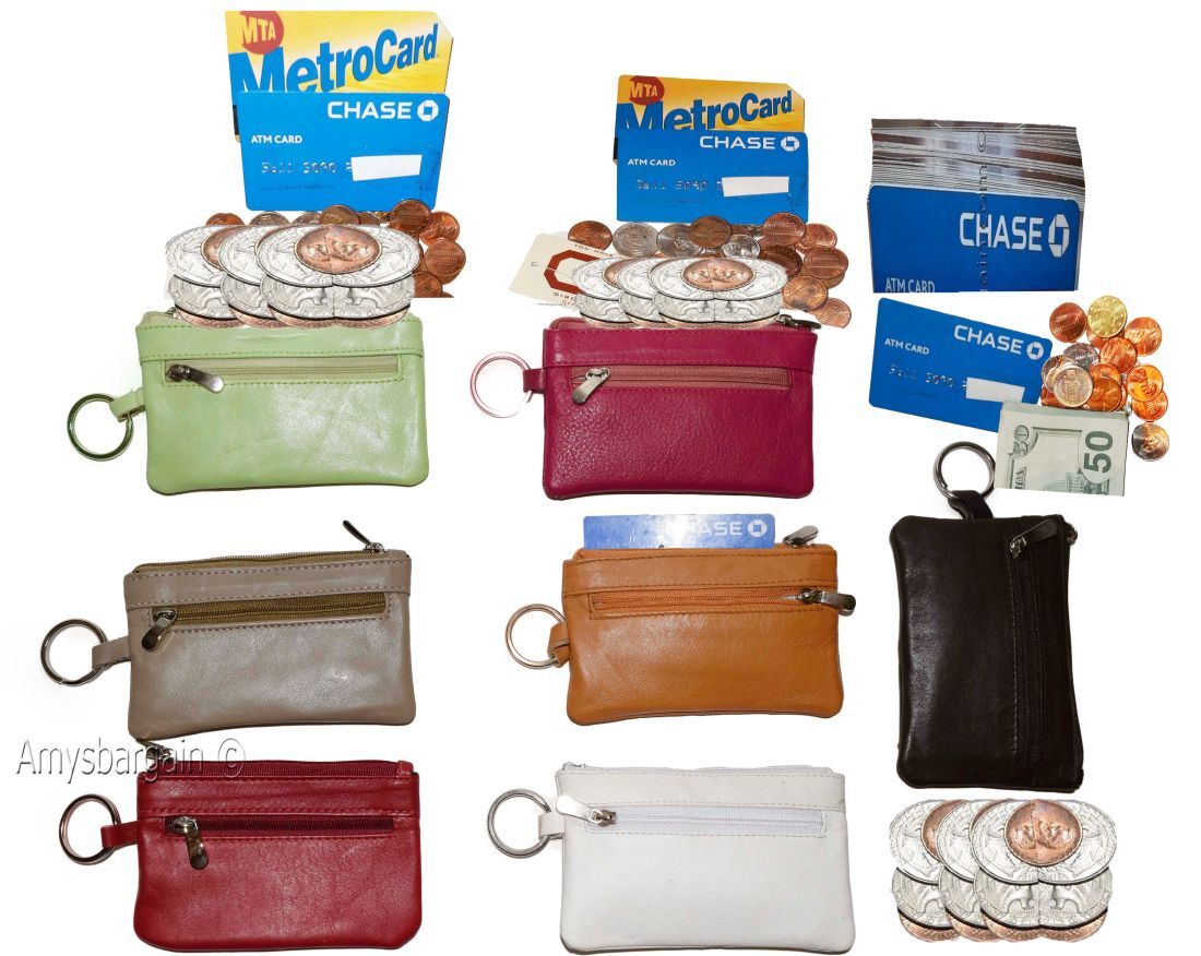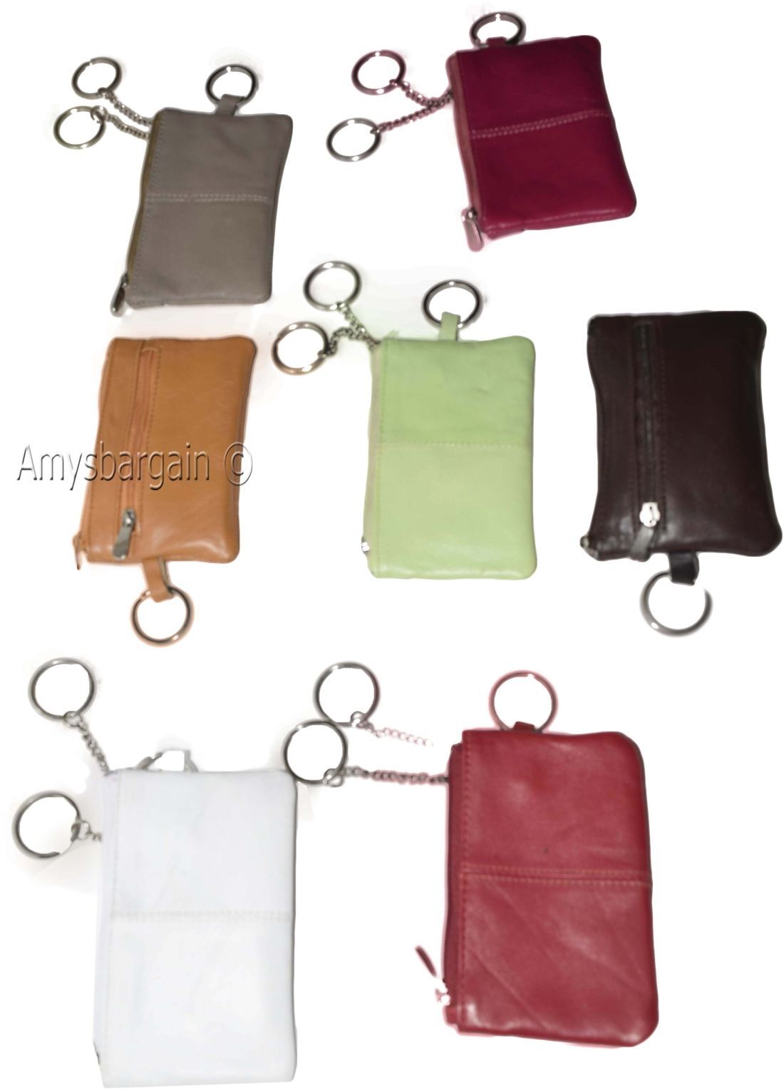 Women's Leather change purse Zip coin wallet Coin purse 2 pockets purse key ring.