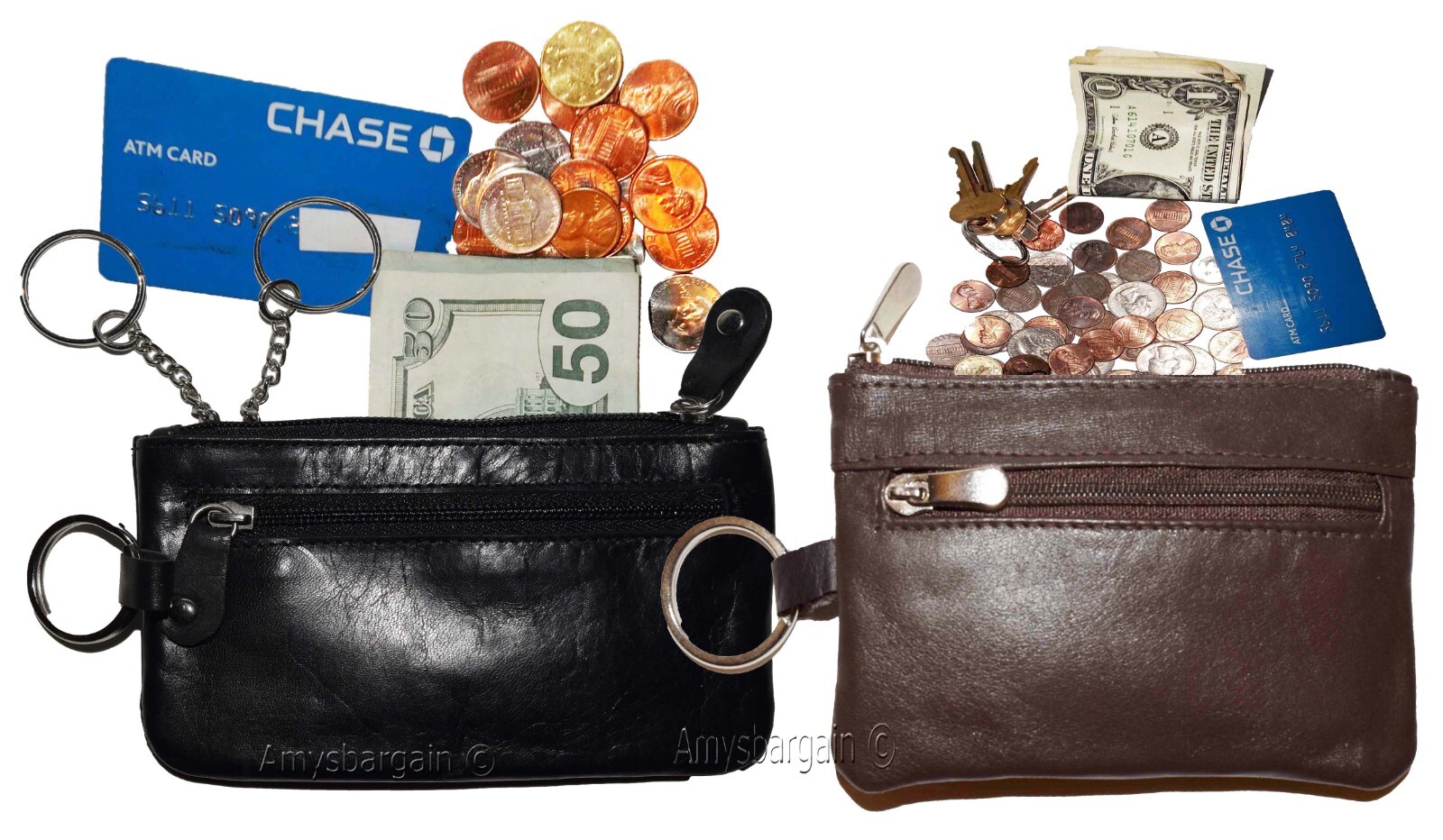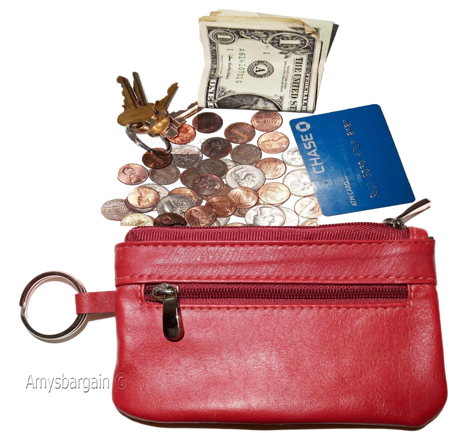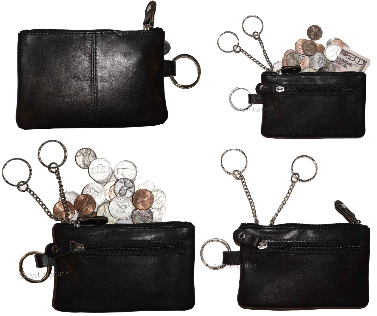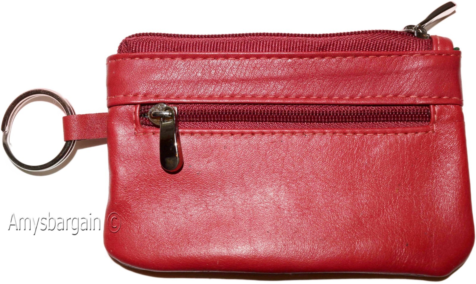 leather change purse zip coin wallet coin purse 2 pockets purse key ring.Description:This is an easy to use 2 pocket lambskin leather change purse for women. It is great for carrying keys, coins, Credit cards, some bills, or other things.This item could also be used to store jewelry. It has many other practical uses.Act now it will not last at this price!Item Details: