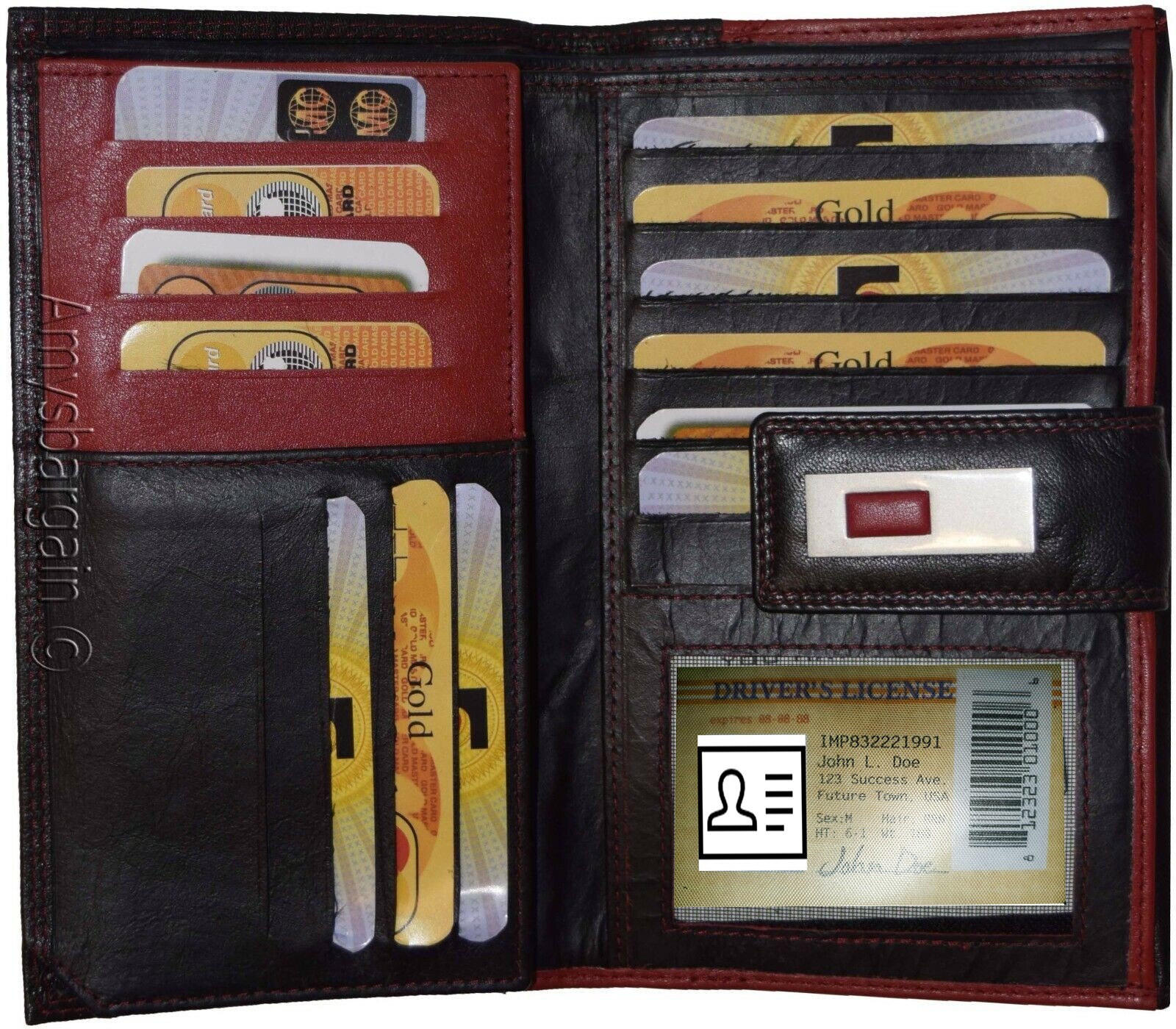 leather compact wallet with 3 folded bills spaces. 2 divided coin pockets. This supper spacious wallet has a generous 13 card spaces and 2; vast billfold compartments; open for easy access. This compact wallet is very fashionable for today's elegant