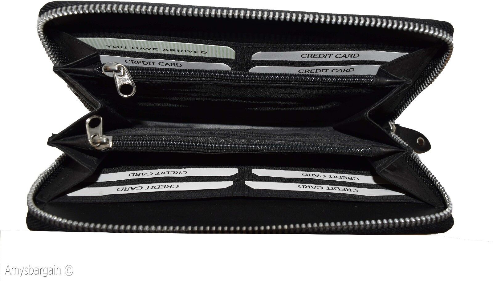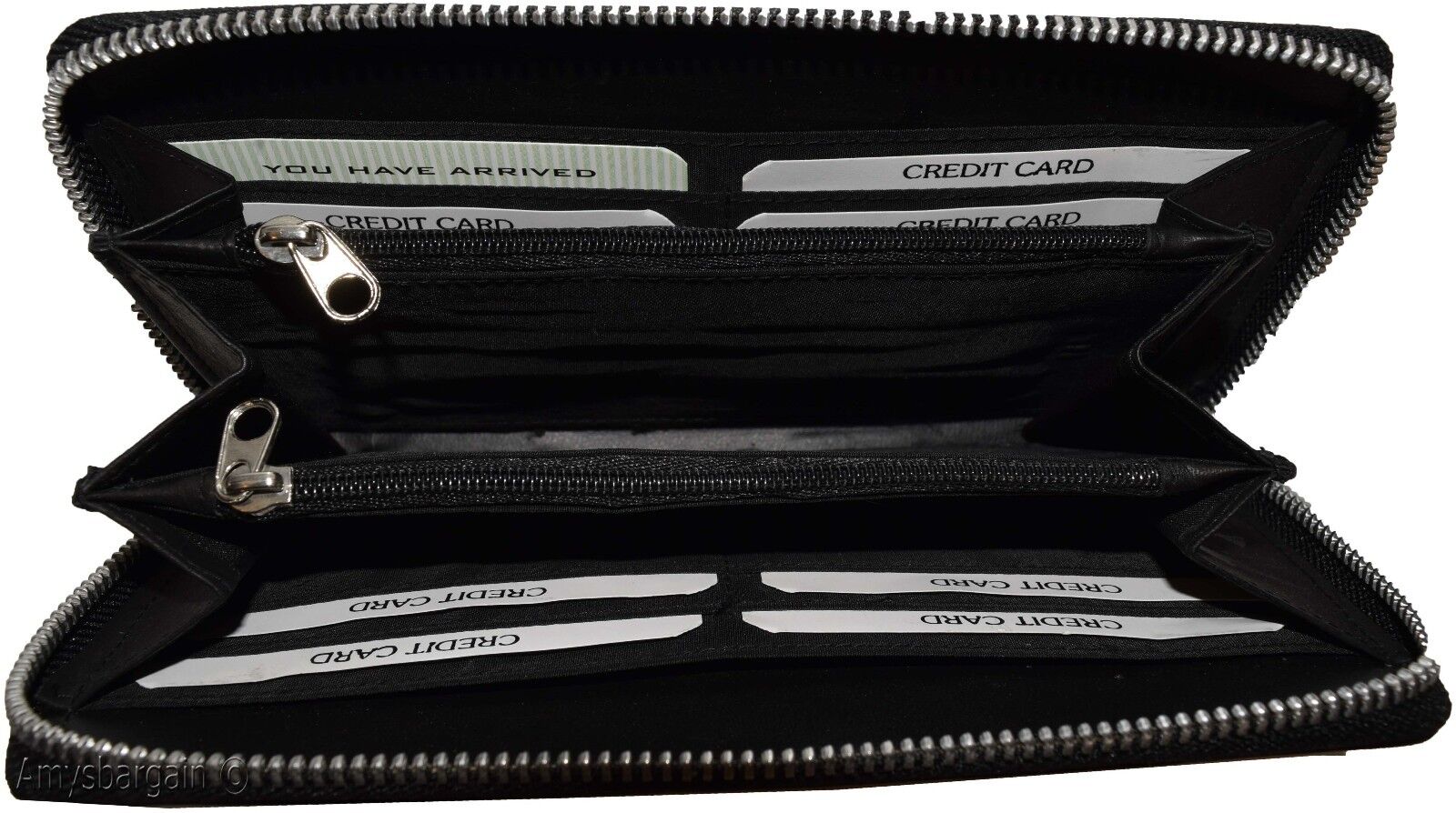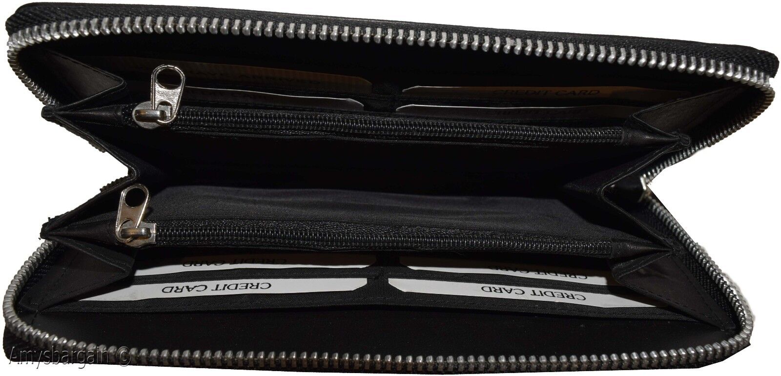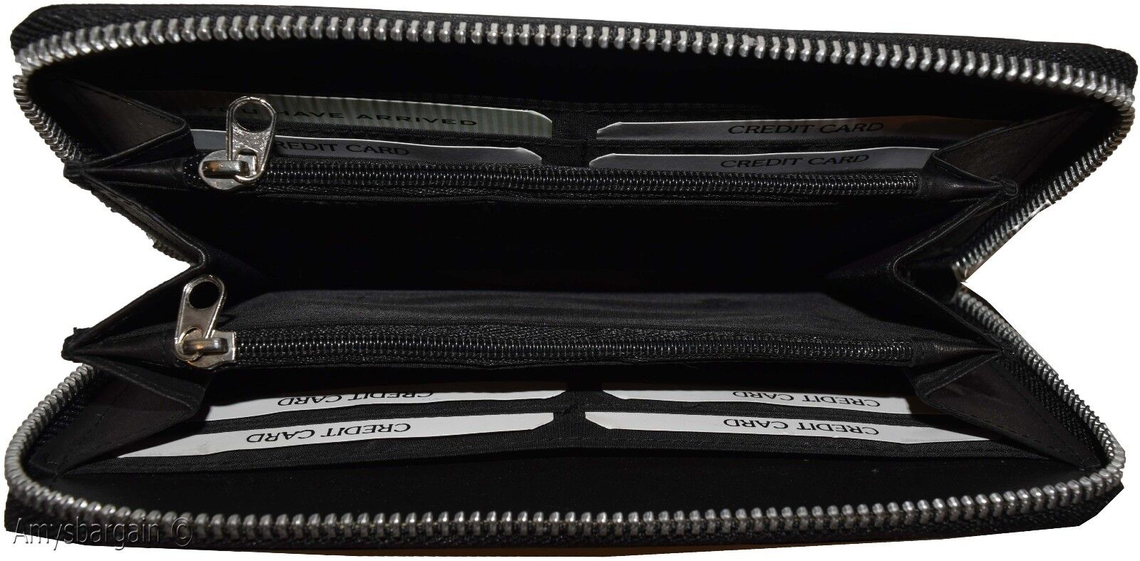 Description:This aluminium zipper decorated compact zip around leather wallet is made out of selected soft cowhide. It offer a generous 8 card organizer, 2 Interior zip change pockets and 5 side spaces for inserting checkbooks bills and receipts.Act now! it will not last at this price!.Item Details: